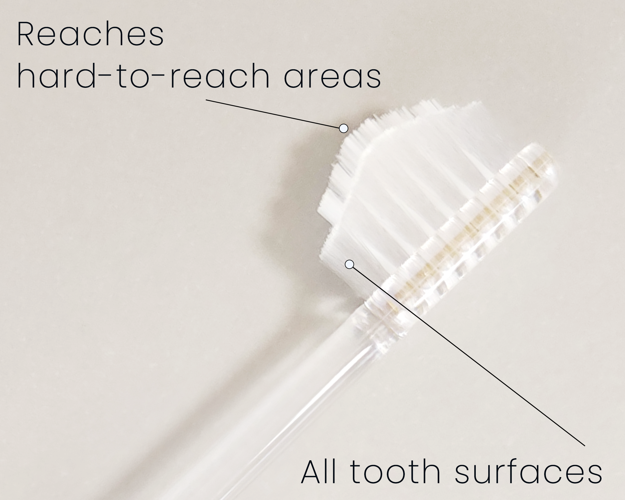 Two-tier bristles of different lengths remove plaque with a light touch.